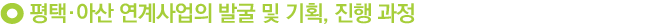 그러나 일련의 사업들이 예산 확보의 어려움과 관련 부서 및 단체와의 순탄치 못한 협의로 인해 탄력 있게 진행되지는 못하고 있었다. 결국, 담당공무원들의 피로감 누적으로 이어져 적당한 돌파구를 찾기 어려운 상황이 반복되는 현실이었다. 하지만 평택·아산 연계협력사업을 계기로 변화가 일어나기 시작했다. 문제 해결의 실마리를 지역이 가지고 있는 고유한 스토리에서 찾고 접근해 나간 것이다. 단순히 정해진 사업계획을 실행하는 것이 아니라 어떻게 하면 지역적 스토리를 잘 구현할 수 있는가에 대한 깊이 있는 고민에 집중하고 지역민의 참여와 모니터링을 통해 사업계획을 조정해 나갔다. 이것은 평택과 아산의 거점관광지를 하나의 관광권역으로 묶어주어 실질적 연계를 이끌어내기 위한 전제조건이기도 하였다.