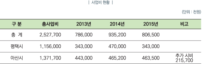 ㅇ 총사업비 : 2,527백만원(국비 2,080백만원, 지방비 447백만원)