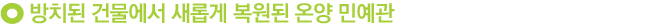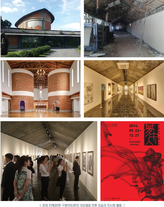 사업 기획 단계에서 아산의 숙원사업인 지역 예술가가 참여할 수 있는 전시공간을 마련하기 위해 고심하던 차였고, 노후화 돼 방치 상태로 있던 민예관을 활용해 연계사업의 관광거점으로 육성하자는 합의가 이뤄졌다. 구체적인 리모델링 방향에 대한 심도 있는 검토와 논의 끝에 세계적인 건축가인 이타미 준의 건축 의도를 살려 원형대로 복원하는 것으로 의견이 모아졌다. 온양 민예관은 대대적인 리모델링 후에 구정아트센터로 재탄생함으로써 아산의 숙원사업이었던 복합전시공간 인프라가 구축될 수 있었다. 또한, 지역 예술가들의 참여공간 확보와 지역주민의 문화향유 및 관광객 유치확대라는 세 마리 토끼를 한꺼번에 잡는 성과까지 거두었다.