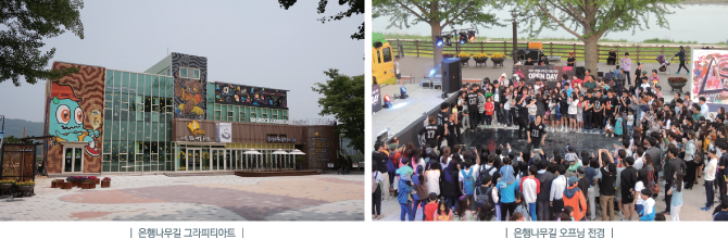 1단계 사업인 은행나무 아트거리 조성 사업을 통해 은행나무길의 상징인 2층 높이의 쉼터 건물에 아산 지역의 특수성을 고려한 그라피티 아트를 접목하고 공공 아트박스 제작 등 이 마무리 되었다. 2단계 사업으로는 500m 차 없는 거리에 경관조명을 설치해 야간관광의 명소로 추진될 예정이다. 1차 은행나무길 아트거리 조성사업에 대한 설문조사 결과, 그라피티 아트에 대해 10~30대 젊은층(85%)의 87%가 긍정적으로 평가함으로써 향후 아산시민뿐만 아니라, 관광객의 볼거리 증진과 신세대 문화를 통한 저변 확대를 기대하고 있다.