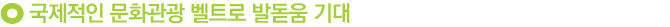 청주를 중심으로 한 도시생활권의 연계로 밀접한 관계를 형성, 각각의 특성을 살린 문화관광자원 개발 및 연계상품 개발 시 지자체의 공동 발전은 물론, 지역주민 활력화가 가능하다. 특히, 세종시, 대전시, 천안시 등 주변 지역주민들의 문화체험 공간은 물론, 수도권의 관광코스로 도약할 가능성이 있으며, 청주국제공항, KTX 오송역, 경부고속도로, 중부고속도로 등을 연계한 국제적인 문화관광 벨트로도 충분히 발돋움할 것으로 기대된다.