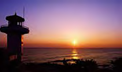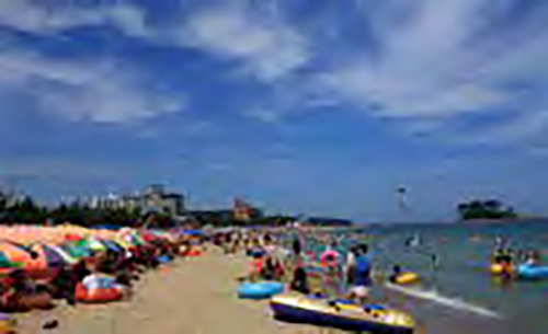 진하해수욕장 간절곶 인근에 위치한 진하해수욕장은 넓은 모래사장 과 투명한 쪽빛바다가 아름다운 울산의 대표해수욕 장이다. 바다 위에 떠있는 거북등 모양의 작은 섬 명선 도의 푸른 소나무들이 하얀 파도와 조화를 이루는 모 습은 특별히 아름답다.