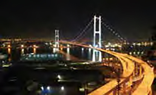 울산대교 지난 2015년 6월1일에 개통한 울산대교는 주탑과 주 탑 사이 거리가 1.15km이르며 세계에서 세 번째, 국내 에서는 가장 긴 단경간 현수교이다. 동해바다와 함께 울산 시가지 대부분과 울산의 주요산업을 한눈에 살 펴 볼 수 있는 이곳은 야경이 아름답기로 유명하다.