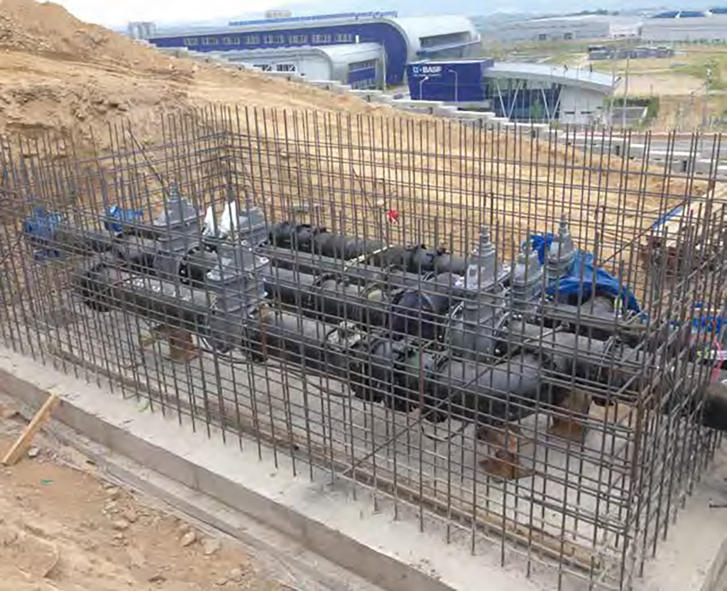 합덕산단 배수지 이러한 과정을 거쳐 충청남도는 2010년, 당진시와 예산군, 한국수자원공사와 함 께 사전 회의를 거쳐 통합설치 방안을 협의하였다. 뒤이어 2011년 8월 5일에는 각 기 관 간에 협약을 체결하기에 이른다. 사업 추진은 수원을 확보하고 배분량을 조정하 는 수자원공사에 위탁 시행하는 방침으로 결정했다. 이러한 협력은 수자원공사에서 도 처음 있는 일이었다. 이윽고 2012년 초부터 본격적인 공사에 착공하게 됐다. 그 런데 공사를 진행하다보니 변경 사항이 생겼다. 예산테크노산업단지, 합덕·순성테 크노폴리스산업단지가 지정해제되는 일이 발생한 것이다. 뒤이어 2013년에는 합덕 인더스파크산업단지 및 예산신소재산업단지, 미니복합타운이 추가 지정되기도 했 다. 충청남도와 당진시, 예산군, 수자원공사는 이 변수들을 반영하며 공사를 진행 했다. 통합관로의 총 길이는 62.4㎞로, 당초 수자원공사가 산출했던 79.5㎞보다도 훨씬 단축되었다. 배수지도 8개소에서 7개소로 줄어들었다. 현재 통합관로는 총 길 이 62.4㎞ 중 52.1㎞가 공사 완료된 상태다.