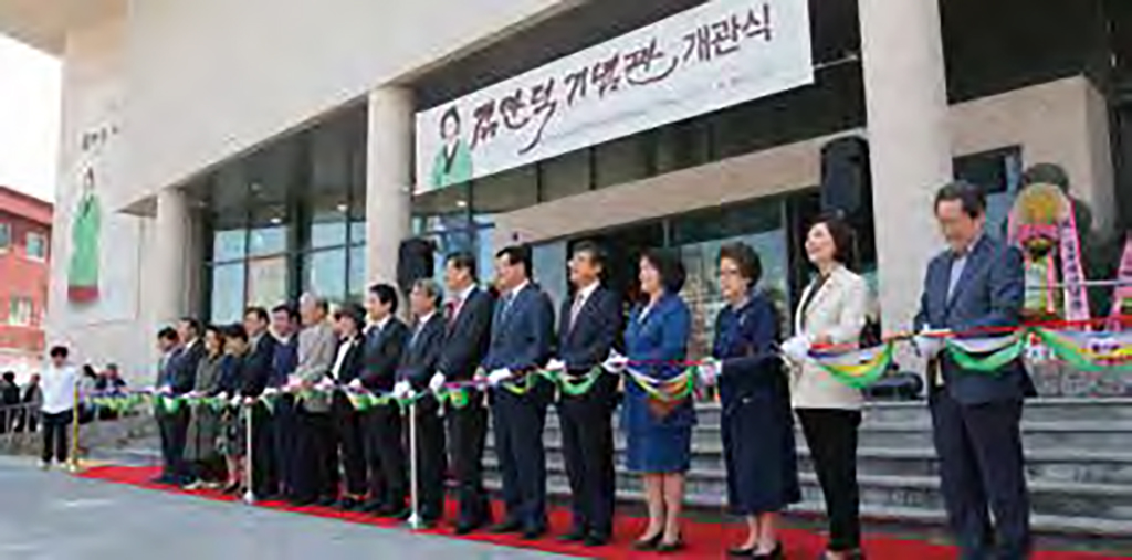 김만덕 기념관 개관식 아직은 그 모습이 명확히 드러나지 않았지만, 유럽의 근사한 크루즈 기항지처럼 여 유롭게 항구를 거니는 여행객들의 모습을 상상해 볼 수 있을 것이다. 제주의 자연석 으로 외관을 장식한 김만덕 기념관은 그 근사한 사진 속에 한 장면을 가장 먼저 완 성시켰다. 한편, (사)김만덕기념사업회의 활동에 주목할 필요가 있다. 1970년대부터 문화계, 학계, 기업인, 재경도민회 등 뜻있는 인사들이 김만덕의 나눔과 희생정신을 알리고 계승하기 위해 발족한 (사)김만덕기념사업회는 김만덕 선양사업을 매년 추 진해 오고 있다. 1980년부터 김만덕상 시상 및 만덕제를 봉행하고 있으며 김만덕 나 눔쌀 만섬 쌓기 행사, 김만덕 국가표준영정 제작은 물론 김만덕 관련 전국 국제 학 술대회와 워크숍, 토론회 등을 꾸준히 진행해 오고 있다. 특히 지역사회를 넘어 베트 남 만덕칸호아학교 설립 등 김만덕 정신을 세계에 알리는 작업도 펼치고 있다. (사) 김만덕기념사업회는 김만덕 기념관 건립의 필요성을 지속적으로 건의하였고, 2010 년 지방선거를 앞두고 각 도지사 후보에게 ‘김만덕 기념관 건립’을 내건 정책 공약을 제안하기도 했다. 김만덕 기념관 건립은 이같은 (사)김만덕기념사업회의 꾸준한 노 력과 더불어 지역 주민의 폭넓은 공감대 속에 진행되었다. 특히 도시재생을 위해서 는 미술관, 박물관, 전시 공간 등 문화시설 확충에 대한 기대가 높기 때문에, 문화컨 텐츠 측면에서도 김만덕 기념관은 호응도가 상당히 높았다.