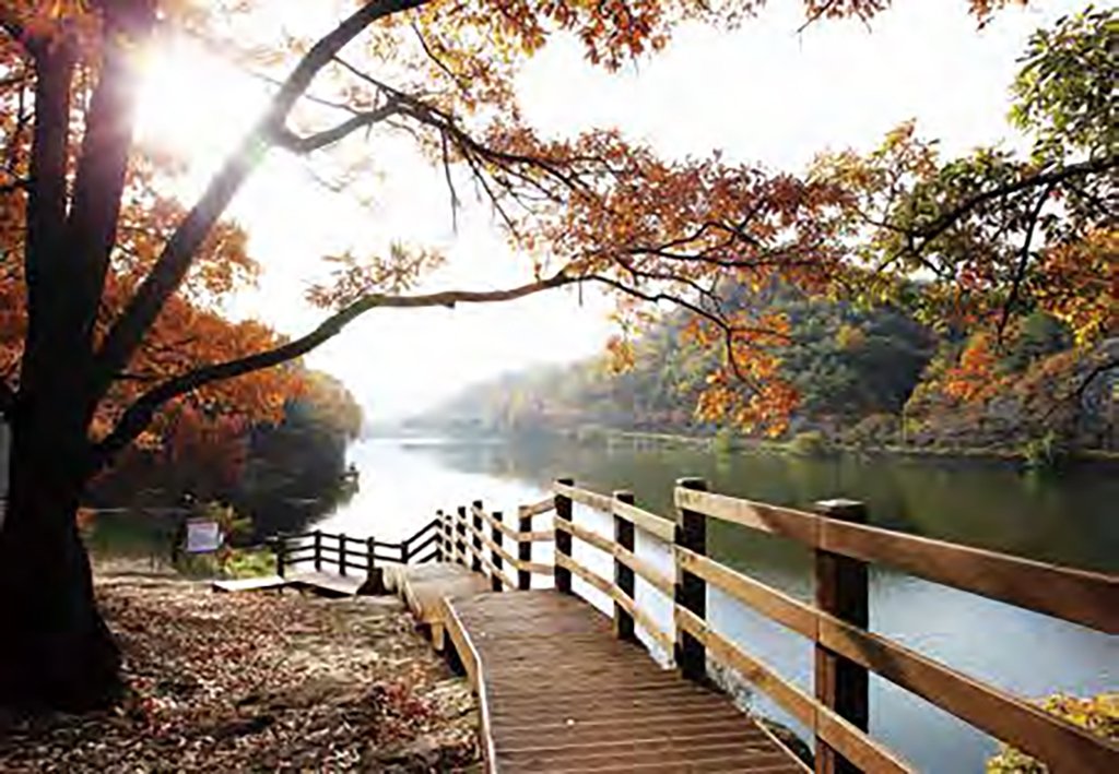 입곡저수지 상류에는 자연생태 그대로 보존된 ‘입곡군 립공원’이 형성되어 있다. 깎아지른 절벽의 우거진 송 림과 완만한 경사지에 들어선 활엽수림과 침엽수림이 멋진 조화를 이룬다. 수려한 자연풍광과 함께 전설을 간직한 기암절벽이 아름답다. 반짝 저수지를 가로 지 르는 출렁다리를 건너는 산책로는 그야말로 일품이 다. 간혹 백로가 수려한 자태를 뽐내기도 하는데, 한 폭의 그림이 따로 없다