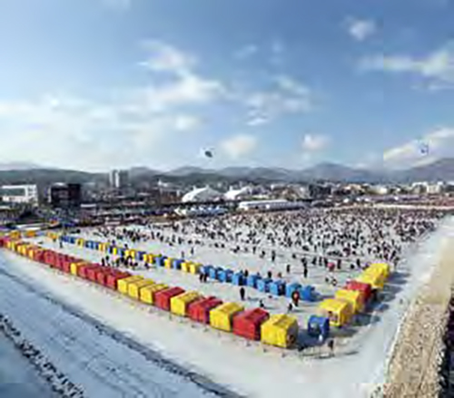 매년 겨울마다 가평천에서 열리며, 산천어 축제와 함 께 겨울축제의 양대 산맥이라 불린다. 우리나라의 겨 울 축제 중 유일하게 축제장까지 전철이 닿아, 서울 에서 먼 곳으로 나가지 않고도 겨울 놀이를 즐길 수 있다. 행사 중 가장 큰 인기를 끄는 것은 송어 얼음낚 시이며, 이외에도 송어 맨손잡기, 얼음썰매, 눈썰매, 범퍼카 등 다양한 행사가 함께 진행된다. 자연생태테 마파크인 이화원, 남이섬, 쁘띠프랑스, 아침고요수 목원, 제이드 가든 등 가평의 주요 관광지와도 가까 워 축제장 인근 볼거리도 풍성하다.