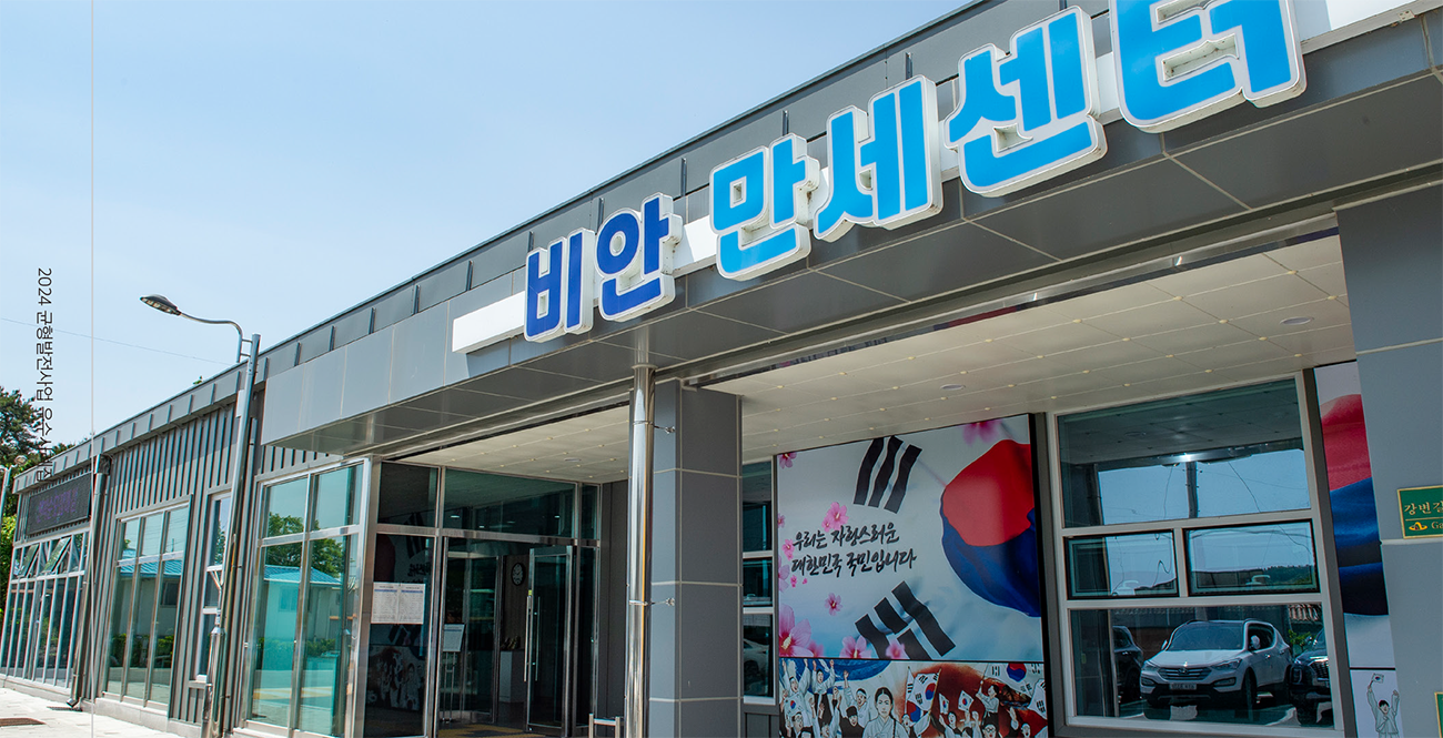 센터의 이름은 비안면이 3·1 운동 시발지인 점에 착안했다. 휠체어 등 보행에 어려움을 겪는 이도 누구나 편히 드나들 수 있도록 턱이 낮은 입구를 지나면 거대한 태극기가 찾는 이를 맞이한다. 독립을 위한 자주적 시민 정신은 비안면 주민들의 자부심이자 비안만세센터의 운영 철학이기도 하다.