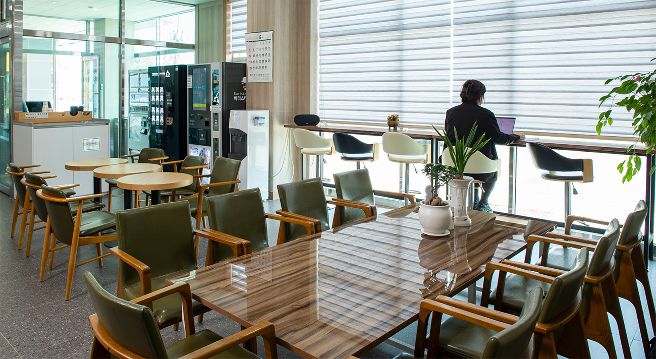가장 먼저 눈에 띄는 공간은 입구에 자리한 마을카페다. 카페를 지나면 곧바로 헬스장으로 연결되는데 이 두 공간이 비안만세센터의 기초 자립을 이끈다. 센터를 운영하는 추진위원회는 저렴한 가격에 24시간 운영하는 헬스장과 카페 수익으로 전기세 등의 기본 관리비를 충당하고 있다고 말했다.