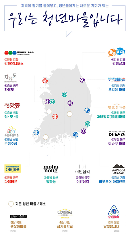 청년마을 사업은 청년 유출 방지 및 도시청년의 유입을 위해 거주와 창업공간을 지원해 지역정착을 지원하는 사업으로 지난 2018년부터 시작되어 현재 총 15곳에서 운영되고 있다.