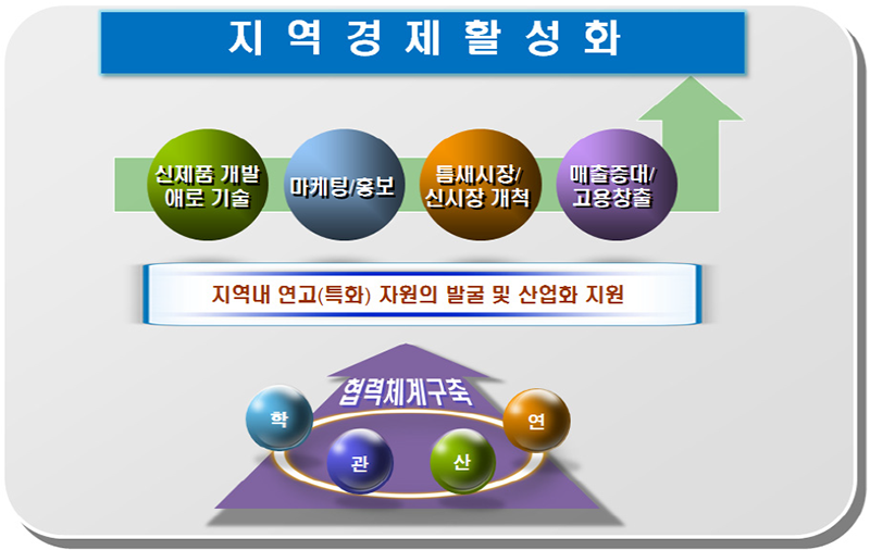 성과지향성의 지역 자생적 산업기반 확충 및 지역주도 추진체계 정착화를 위해 중앙과 지역 간 역할 분담을 실시하는 등 사업추진 체계가 개편되었다. 지역특화산업육성사업은 지역연고산업육성사업, 지역혁신센터조성사업 및 지자체연구소육성사업 등 3개 사업으로 구성되어 있으며 2011년부터 지역산업진흥계획에 편입되었다.